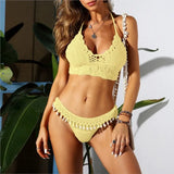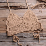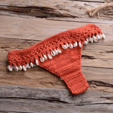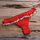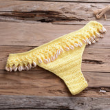 Crochet Shell Trim Bikini Set with Halter Top and Mid-Waist Bottoms
